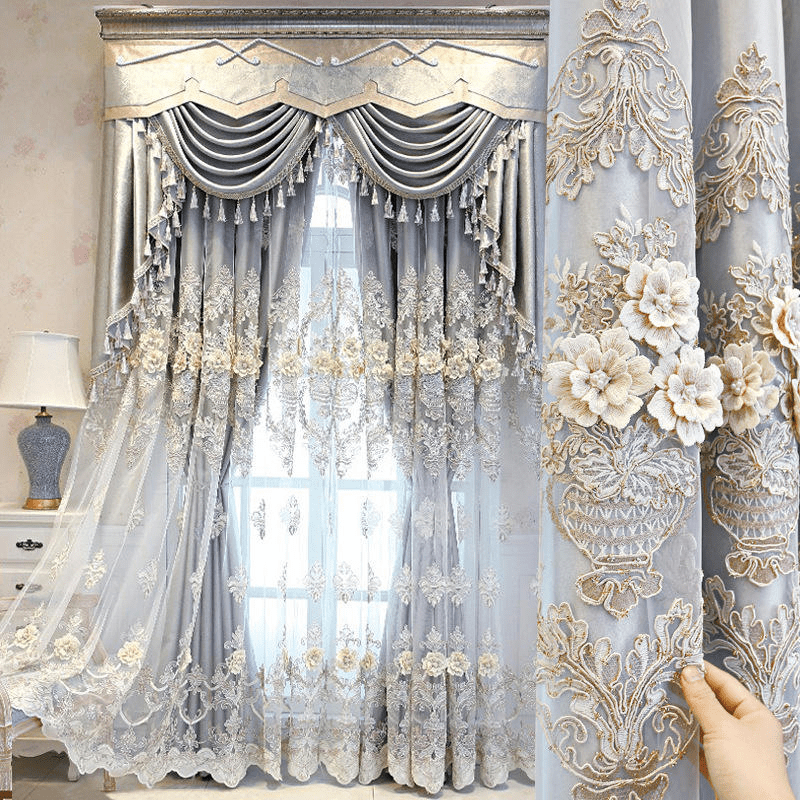 เพิ่มความหรูหราให้กับบ้านของคุณด้วยม่านปักลายหรูสไตล์ยุโรป ผลิตจากวัสดุคุณภาพสูง พร้อมลวดลายปักอย่างประณีต ผ้าม่านที่ช่วยเสริมความสวยงามให้กับห้องนั่งเล่น ห้องนอน และห้องรับประทานอาหาร ด้วยดีไซน์ที่หรูหราเหนือกาลเวลา