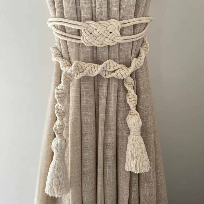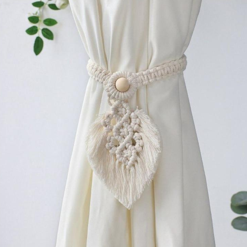 CT-042 ที่รัดผ้าม่านแมคคราเม่ถักมือ ดีไซน์วินเทจ-โบฮีเมียน สวยละมุนด้วยเชือกฝ้ายธรรมชาติ มีหลายแบบให้เลือก ใช้งานง่าย