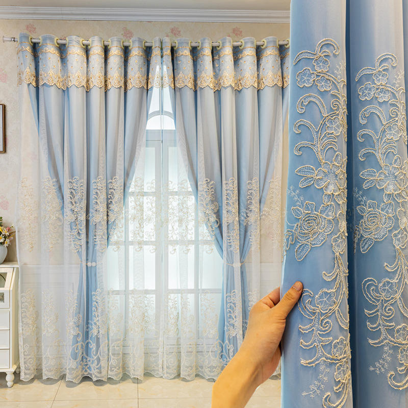 ESBC-037 | ม่านปักลายลูกไม้หรู 2 ชั้น พร้อมผ้าโปร่ง สไตล์ยุโรป