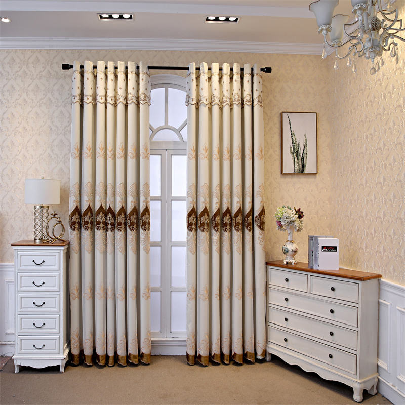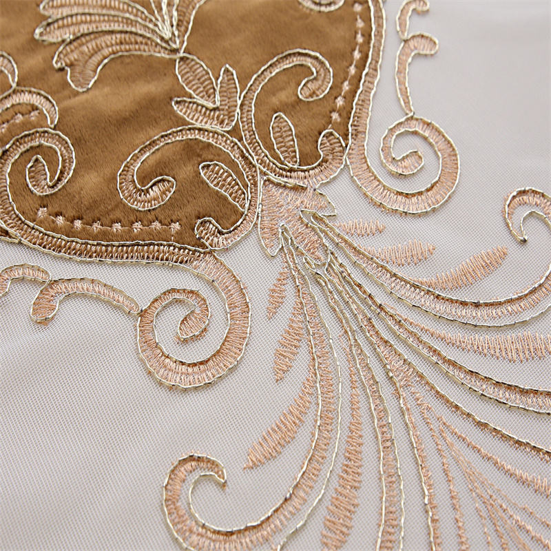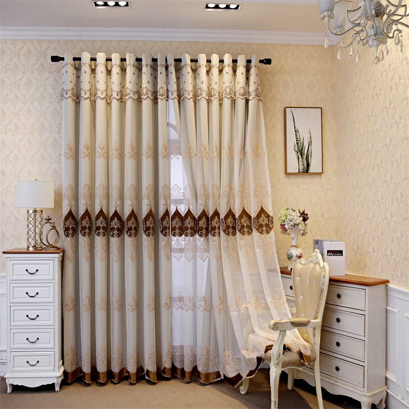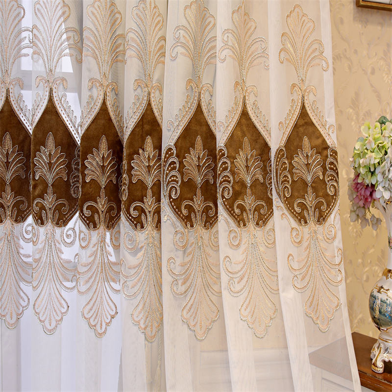 ESBC-052 ม่านผ้าปักลายหยดน้ำโทนน้ำตาลทองสุดหรู พร้อมผ้าโปร่งในตัว เหมาะสำหรับห้องนั่งเล่นหรือห้องนอนที่ต้องการความหรูหราและความเป็นส่วนตัวในเวลาเดียวกัน