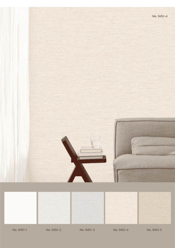 วอลล์เปเปอร์ลายผ้า J-PLATINUM รุ่น 9451 สัมผัสเรียบเนียน สีเอิร์ธโทนดูอบอุ่น เหมาะกับห้องทุกสไตล์ ตกแต่งง่าย ใช้ได้ทั้งบ้านและงานโปรเจกต์ ให้ความรู้สึกสบายตาและคลาสสิก เหมาะกับการตกแต่งทุกพื้นที่