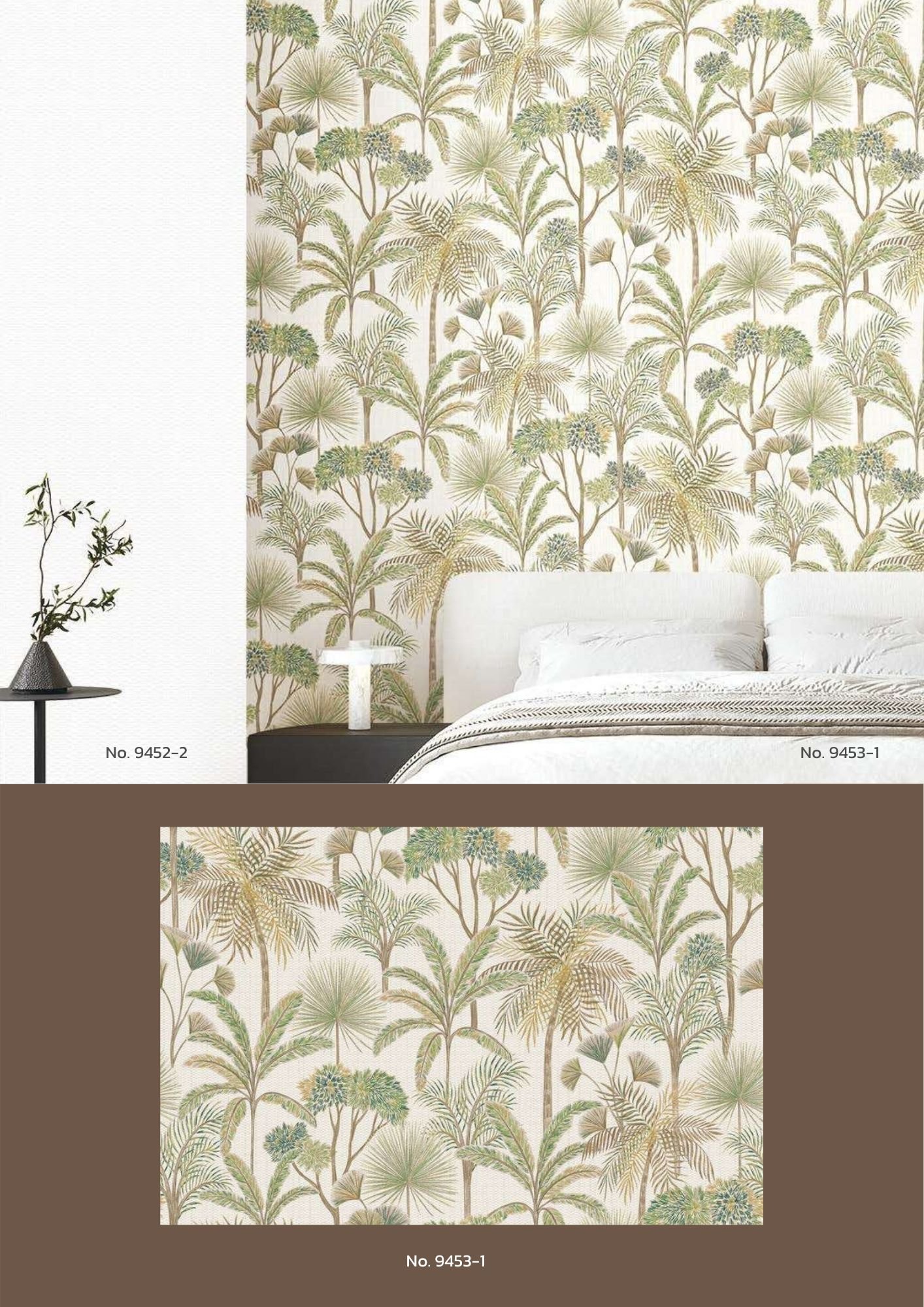 J-PLATINUM – วอลล์เปเปอร์ลายใบไม้ทรอปิคอลหรูหรา รุ่น 9453 เพิ่มความมีชีวิตชีวาให้กับห้องนอนหรือห้องรับแขก พร้อมบรรยากาศอบอุ่นแบบธรรมชาติ