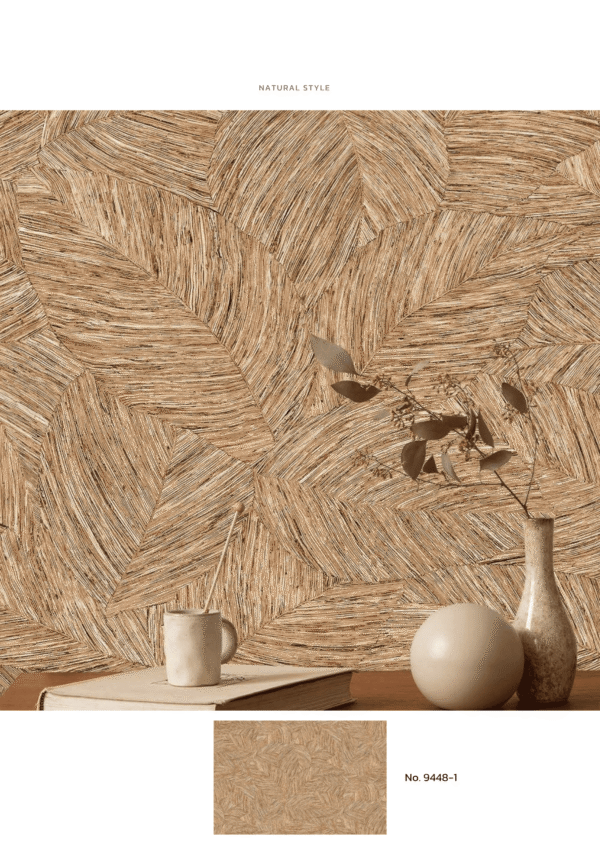 J-PLATINUM – วอลล์เปเปอร์ลายใบไม้สานธรรมชาติ รุ่น 9448-1 เติมเต็มเสน่ห์แห่งธรรมชาติและศิลปะแบบ Earth Tone สัมผัสงานคราฟต์ ในเฉดสีไม้ธรรมชาติให้กับทุกพื้นที่ของคุณ