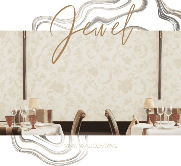 คอลเลกชัน JEWEL | คือการผสมผสานความงามคลาสสิกกับความร่วมสมัยอย่างลงตัว ลวดลายดอกไม้และใบไม้ในโทนสีทอง ครีม และไวน์แดง ให้ความรู้สึกหรูหราเหนือกาลเวลา เหมาะสำหรับบ้านสไตล์วินเทจ โรงแรม หรือร้านอาหารระดับพรีเมียม พร้อมเติมเต็มบรรยากาศให้นุ่มนวลและอบอุ่น ด้วยผิวสัมผัสแบบไวนิลคุณภาพสูงที่ทั้งทนทานและดูแลรักษาง่าย