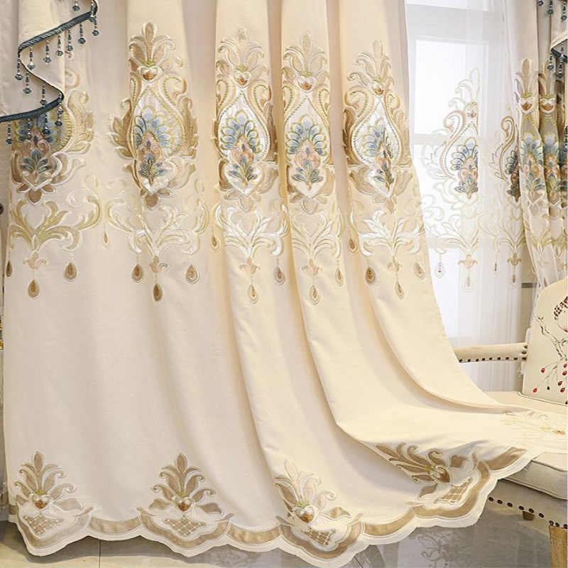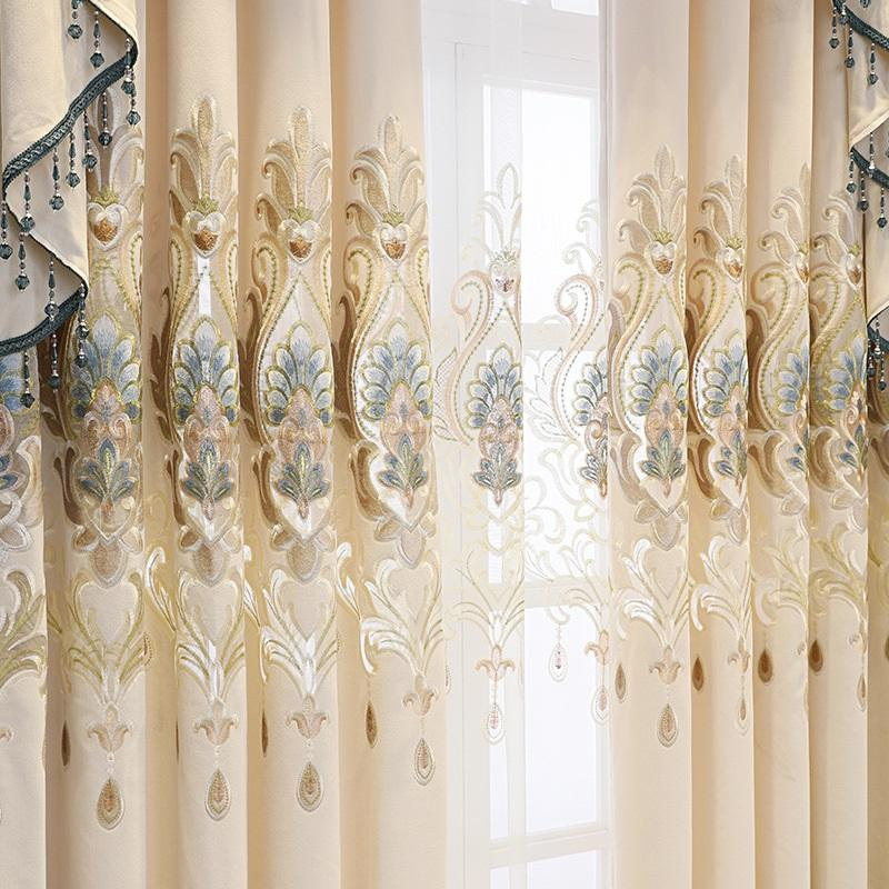 LC-005 | ผ้าม่านฝรั่งเศสหรูหรา ดีไซน์ลายปักคลาสสิก เนื้อผ้าแจ็คการ์ดหนา กันแสงได้ดี เหมาะสำหรับห้องนั่งเล่นและห้องนอน สั่งตัดได้ตามขนาด พร้อมบริการติดตั้ง