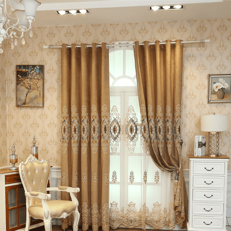ผ้าม่าน LC-016 หรูหราสไตล์ยุโรป มาพร้อมผ้าม่านโปร่งลายปัก เพิ่มความสง่างามให้บ้าน สั่งตัดตามขนาดได้ มีหลายสีให้เลือก