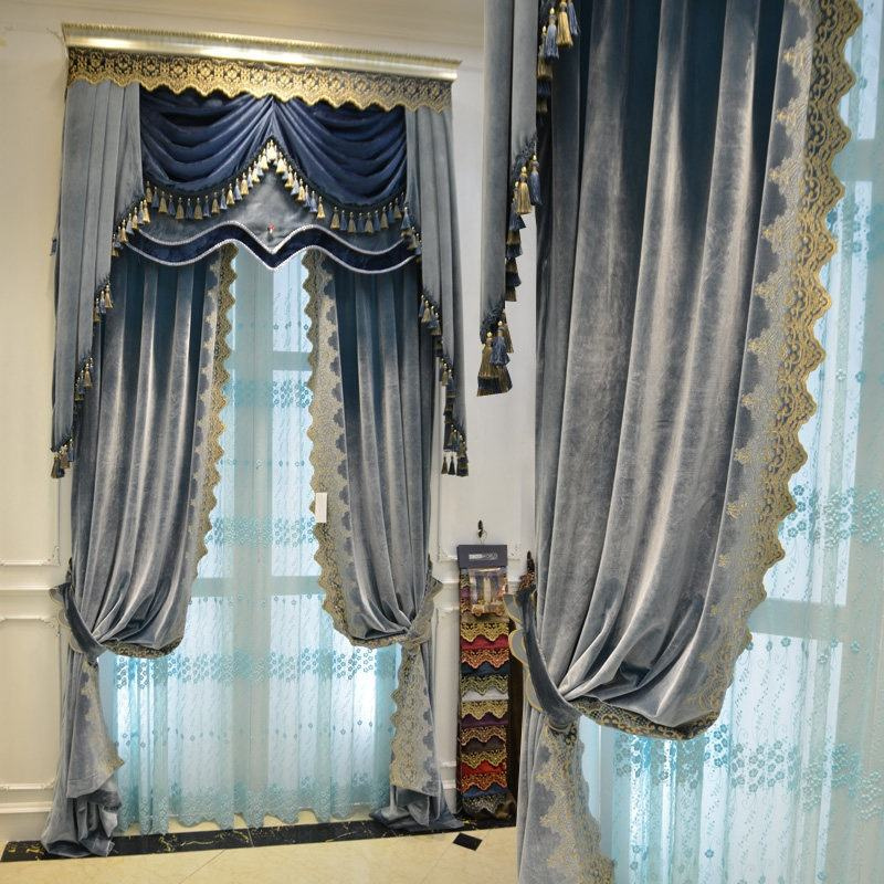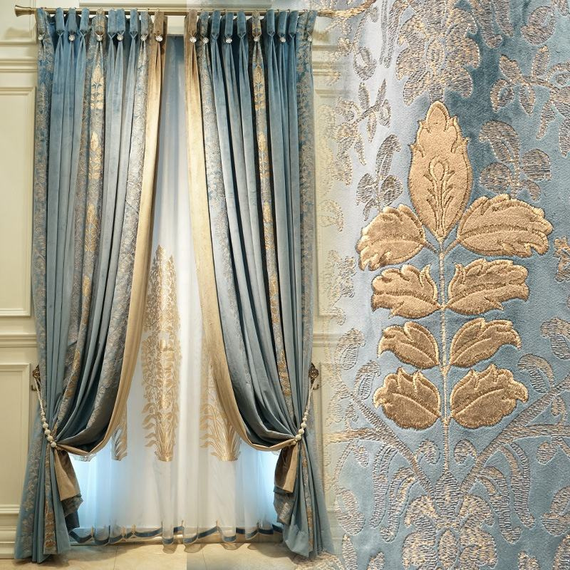 ม่าน LC-050 หรูหราเหนือระดับ ด้วยผ้ากำมะหยี่เนื้อหนาสีเขียวอมฟ้า ลวดลายปักทองสไตล์ราชวงศ์ยุโรป พร้อมกล่องม่านวาเลนซ์ประดับพู่ห้อย ให้ความสง่างามในทุกมุมของห้อง เหมาะสำหรับบ้านหรู ห้องรับแขก และโครงการระดับพรีเมียม