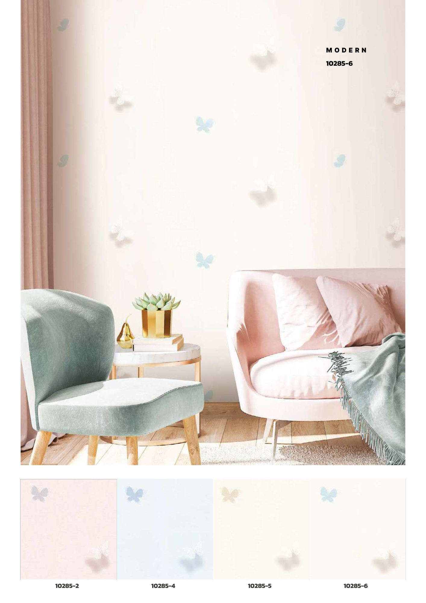 พบกับคอลเลกชันวอลเปเปอร์ OBJET – Modern Swatch 02 รุ่น 10285 วอลเปเปอร์พาสเทลลายผีเสื้อ พื้นผิวนูนละเอียด น่ารัก ทันสมัย ลงตัวทุกมุมบ้าน