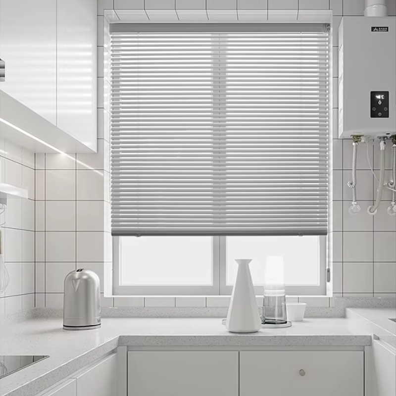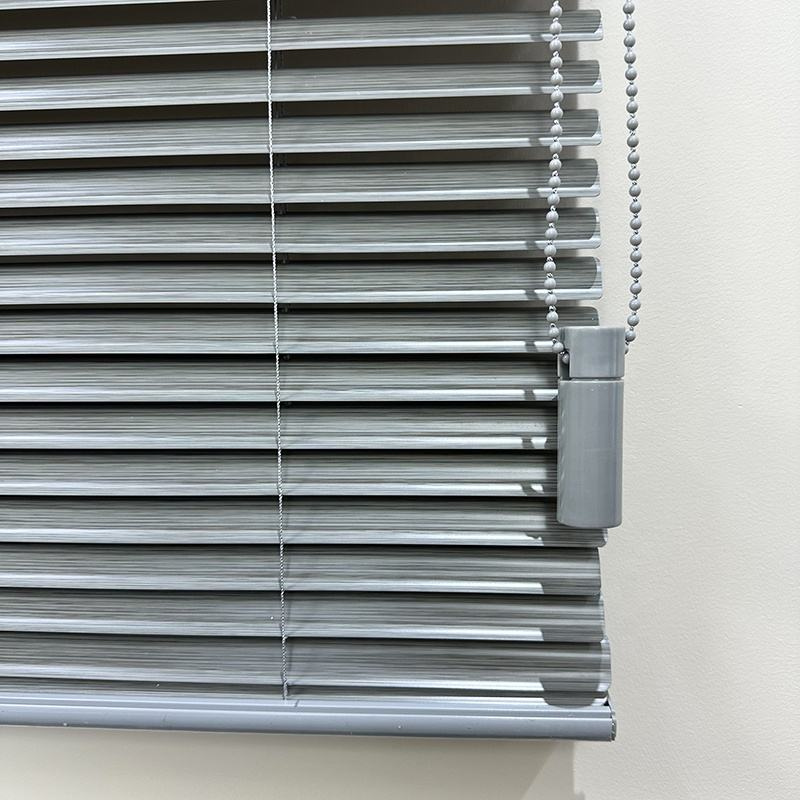 มูลี่PVC รุ่น PVCB-001 สีเทาเมทัลลิก ดีไซน์เรียบหรู กันน้ำ 100% เหมาะสำหรับพื้นที่เปียก เช่น ห้องน้ำ ห้องครัว ห้องซักล้าง รวมถึงห้องนั่งเล่นหรือห้องทำงาน ตัวใบม่านแข็งแรง ยืดหยุ่นสูง ไม่เสียรูปง่าย พร้อมระบบปรับแสง 180° ใช้งานง่าย